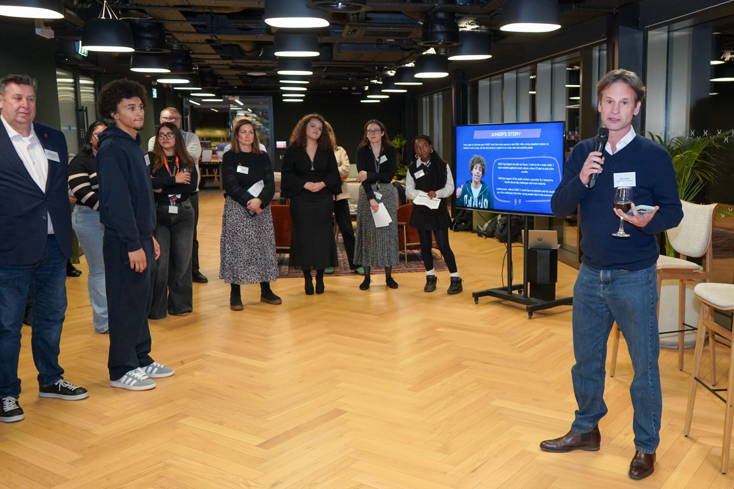 The reception was a celebration and thank you to those who make WEST’s mission possible. Guests saw first-hand how their contributions are transforming the lives of young people in West London. This was not just through numbers and stories, but through seeing brilliant artwork and experiencing a vibrant junior session first hand with tours from WEST staff.